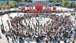 大年初三,屏边县2026年苗族花山节盛大启幕。在屏边苗族自治县滴水苗城民族团结广场上,身着鲜艳民族服饰的男女老少与远道而来的游客齐聚一堂。庄重的祭花杆仪式上,祭祀队伍面向象征吉祥与丰收的花杆虔诚敬祭,祈求风调雨顺、幸福安康。随后,文艺演出在欢腾的气氛中开场,《举盏欢歌》《织月流光》《花伞情缘》等精心编排的民族歌舞轮番上演,悠扬的芦笙与激昂的旋律交织,绚丽的服饰与动人的舞姿辉映,不断将现场气氛推向高潮,台下阵阵掌声与喝彩声不断,广场成为一片欢乐的海洋。演出结束后,斗鸡、爬花杆、踢脚、舞蹈、苗家对山歌等花山节系列传统赛事项目举办,吸引了众人的目光。在斗牛赛事中,昂首入场的斗牛激烈顶撞交锋,场下观众高声呐喊助威,芦笙声、鼓声、欢呼声交织在一起,响彻了整个花山。
