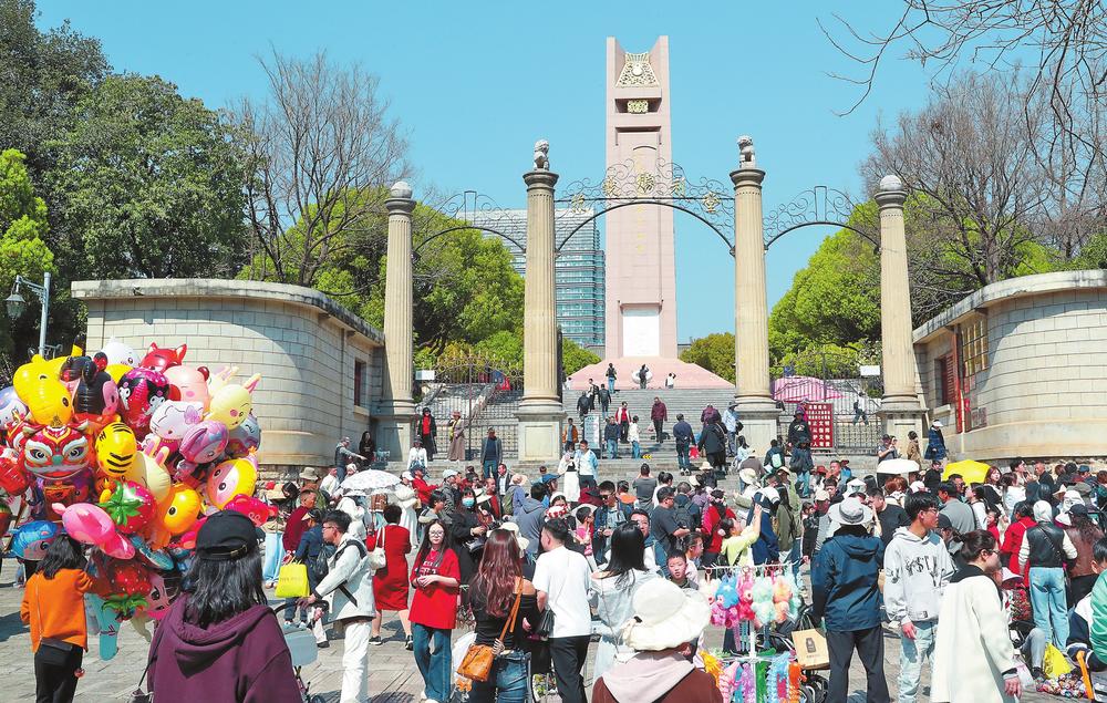 云南抗战胜利纪念堂前的光华街上游人如织。记者 杨峥 摄