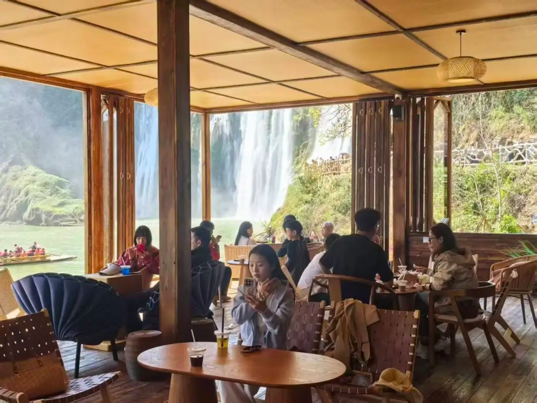 在神龙瀑旁的瀑布咖啡点位,游客畅享咖啡饮品,临窗而坐,直面飞流直下的瀑布景观,听瀑声、品醇香、拍美景,成为新春打卡爆款。景区推出的“门票+咖啡”套餐备受青睐,不少家庭游客、年轻群体在此停留休憩,感受山水间的松弛感。“以前也来过九龙瀑布,咖啡好像是新开的,以前没有,年轻人比较喜欢喝咖啡,坐在九龙瀑布一边喝咖啡,一边欣赏美景,觉得很惬意,是一种新的体验!”来自昆明的周周开心地介绍。