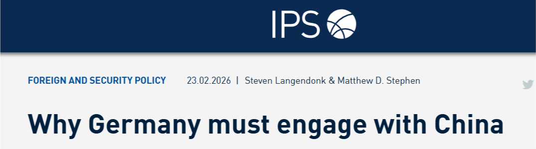 德国《国际政治与社会》杂志23日发表题为《为何德国必须与中国接触》的文章。文章指出,德国与中国合作不仅将帮助自身应对美国的“持续勒索”,减少对美国的依赖,德国的中国战略还可能决定欧洲的未来。