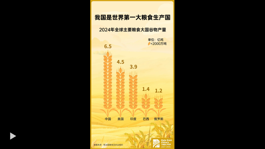 手中有粮,心中不慌。作为世界第一大粮食生产国,我国粮食产量连年站稳高位,2025年总产量达14297.5亿斤,稳稳守护亿万家庭的烟火日常,坚实筑牢大国发展的安全根基。“小家”热气腾腾,“大家”蒸蒸日上!