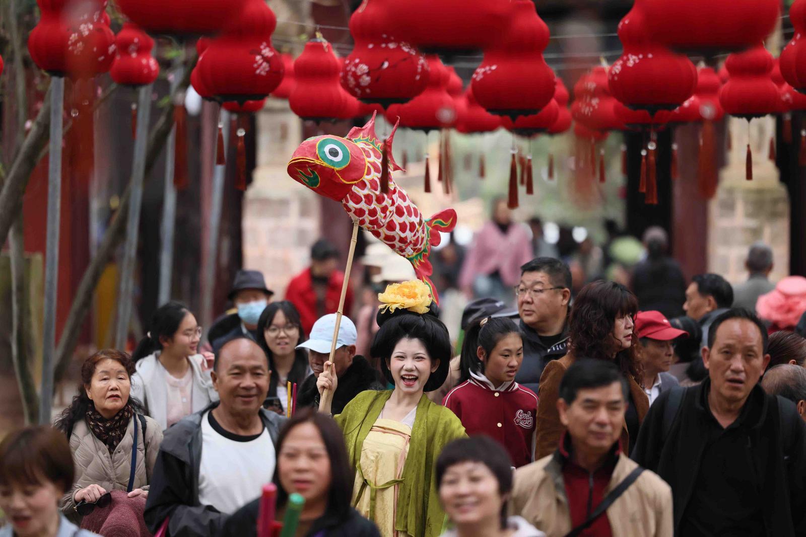 2月25日,农历丙午马年正月初九,传承400余年的昆明大年初九“金殿庙会”以“神行甲马·乐赏山茶”为主题在鸣凤山上热闹开锣,传统祈福习俗与新潮游园体验相融,老昆明的年味儿在熙攘的人群中拉满,成为市民游客新春祈愿、乐享民俗的好去处。据昆明金殿风景名胜区预估,当天赶庙会的游客约3.8万人次。