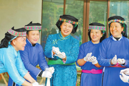 陈宝燕(中)和村民们一起做糯米粑粑。