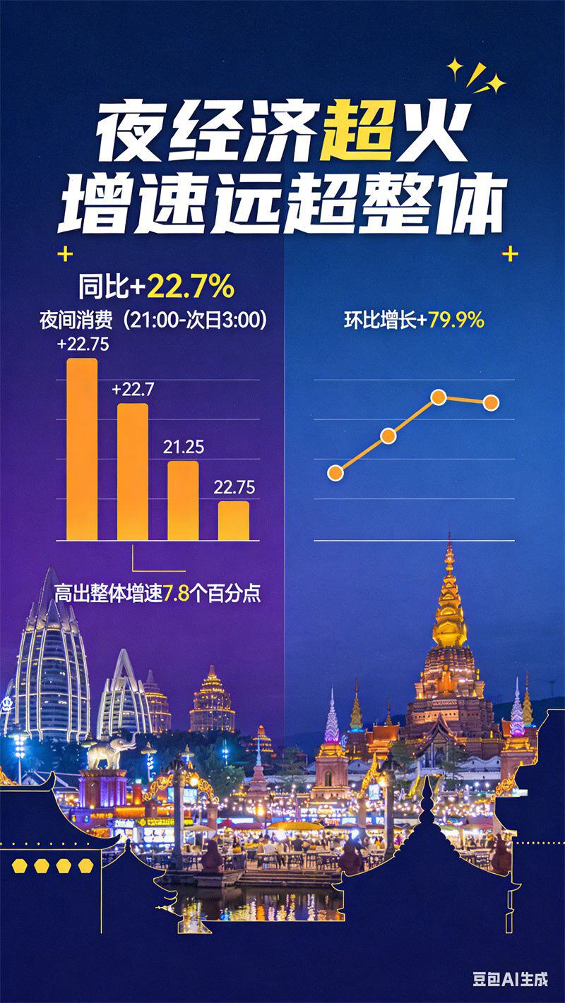 夜间经济也成为本次假期的一大亮点。春节期间,夜间时段(21:00至次日3:00)消费同比增长22.7%,高出整体消费增速7.8个百分点,环比增长79.9%,充分体现了节日氛围对夜间消费的强劲拉动作用。
