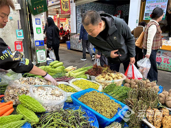 此外,蕨菜、荠菜、折耳根芽等春味时鲜也吸引了不少市民游客的眼光。从浙江来昆明旅游的赵女士就被这满眼的春色吸引,举着手机不停拍照。“走进云南的菜市场感受到了不一样的烟火气!”她满脸惊奇地说,好多菜别说吃,见都没见过。