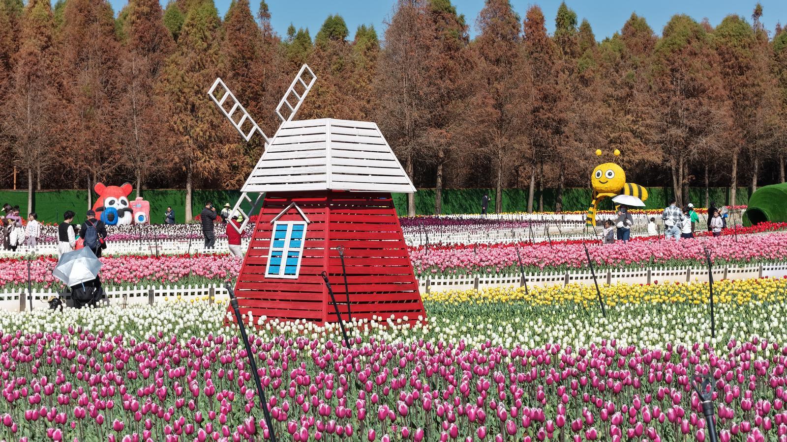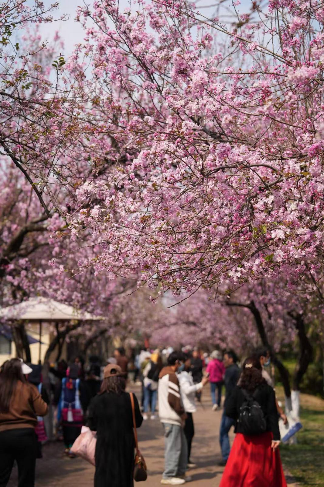 除了樱花,这个季节昆明的郁金香也不要错过。翠湖公园今年栽种郁金香超20万株,品种多达26个,搭配水仙、虞美人,花潮涌动。捞渔河湿地公园的百万株郁金香同样迎来盛花期,红粉紫交织成海,是踏春必去的打卡地。