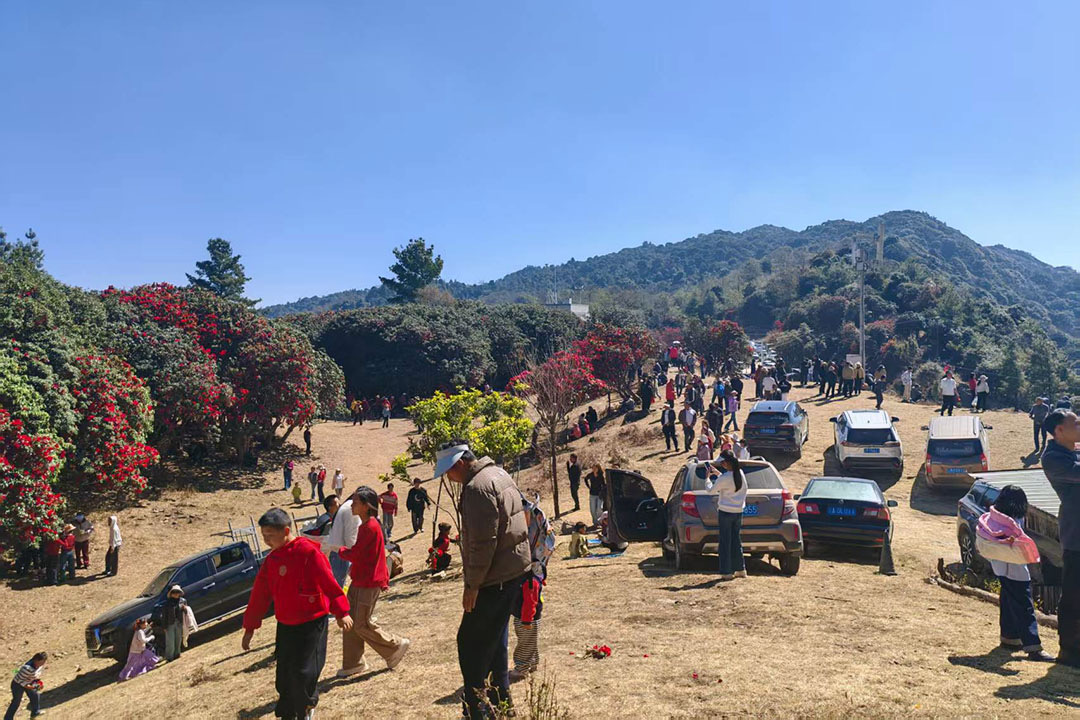 昌宁天堂山,万亩野生杜鹃染红山野,灿若云霞。春节假期,这里已成滇西生态赏花的热门地,游客众多。