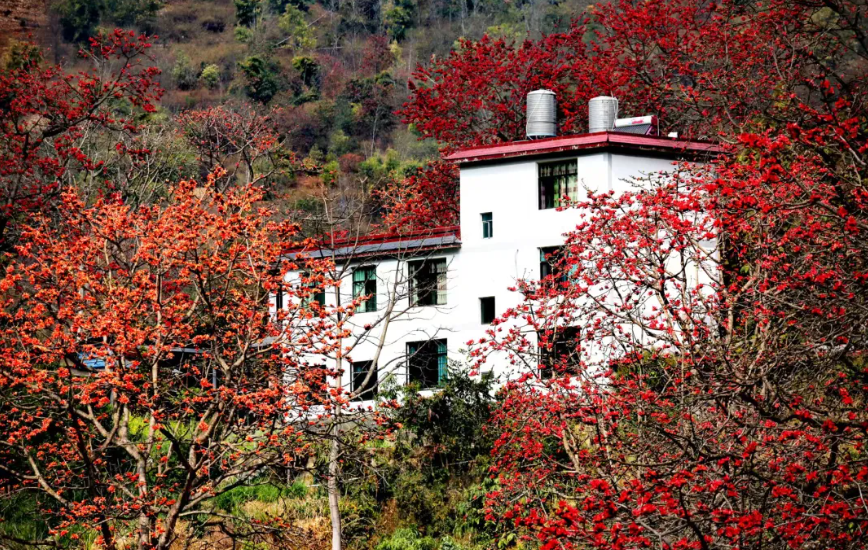春风一吹,怒江两岸的木棉便染红了江岸。火红的花朵如火焰燎原,铺展成怒江最壮阔的春日画卷。