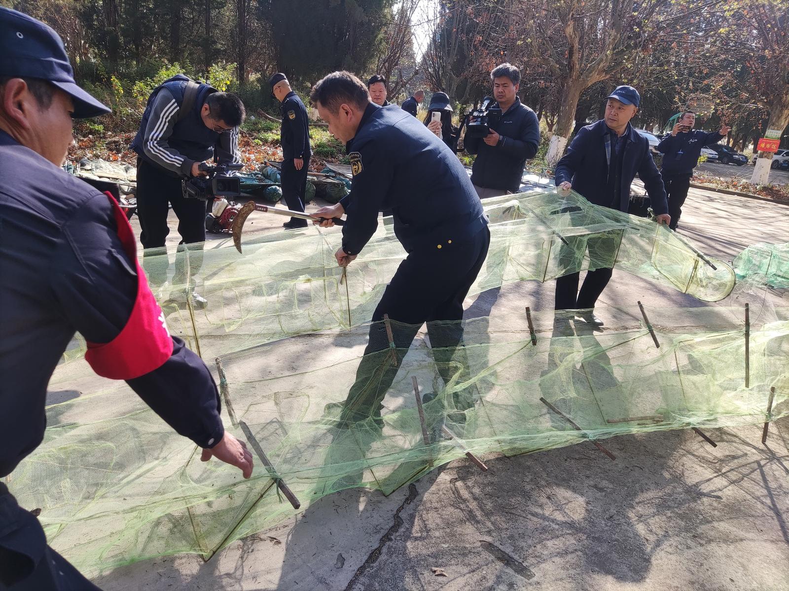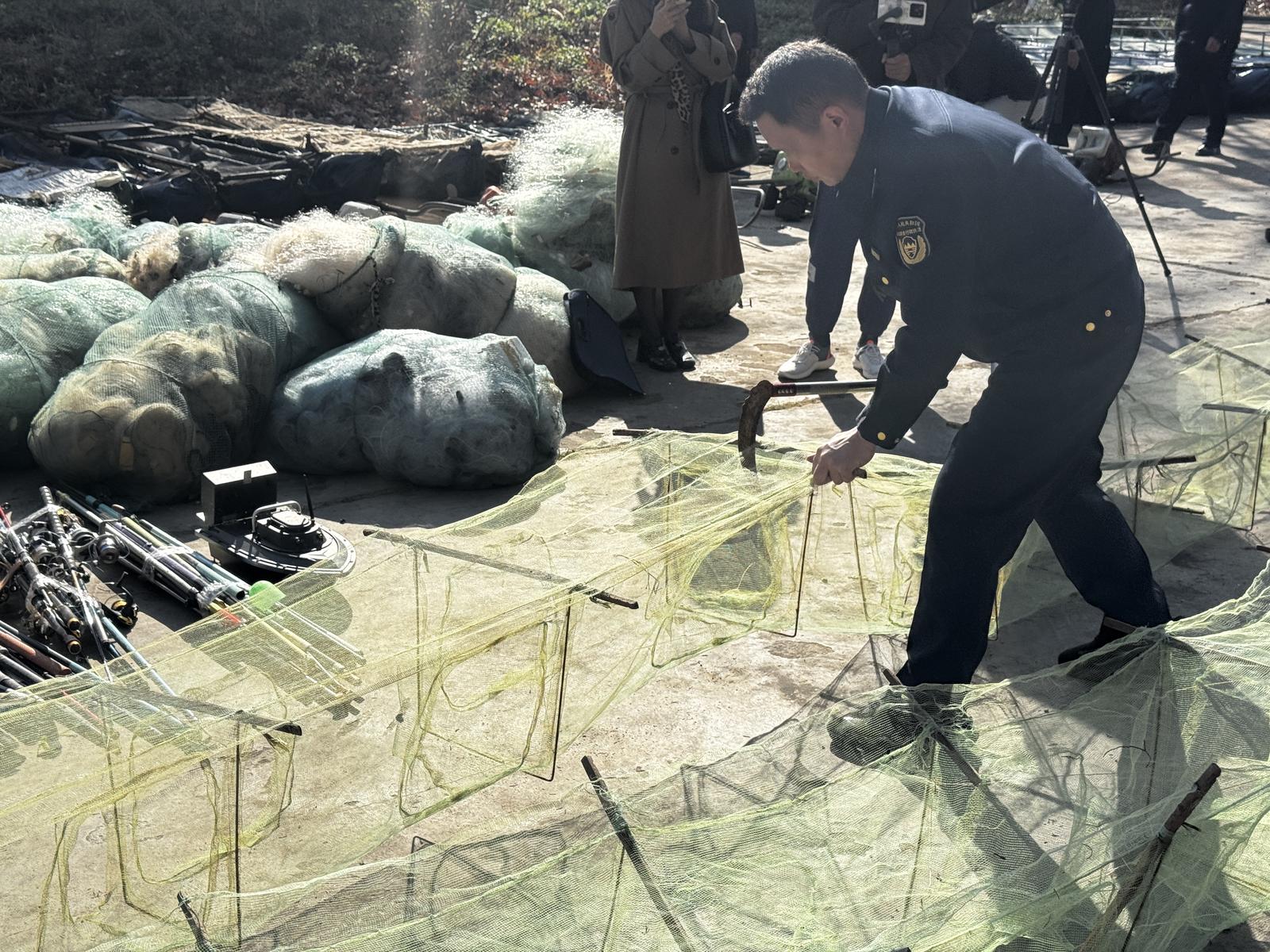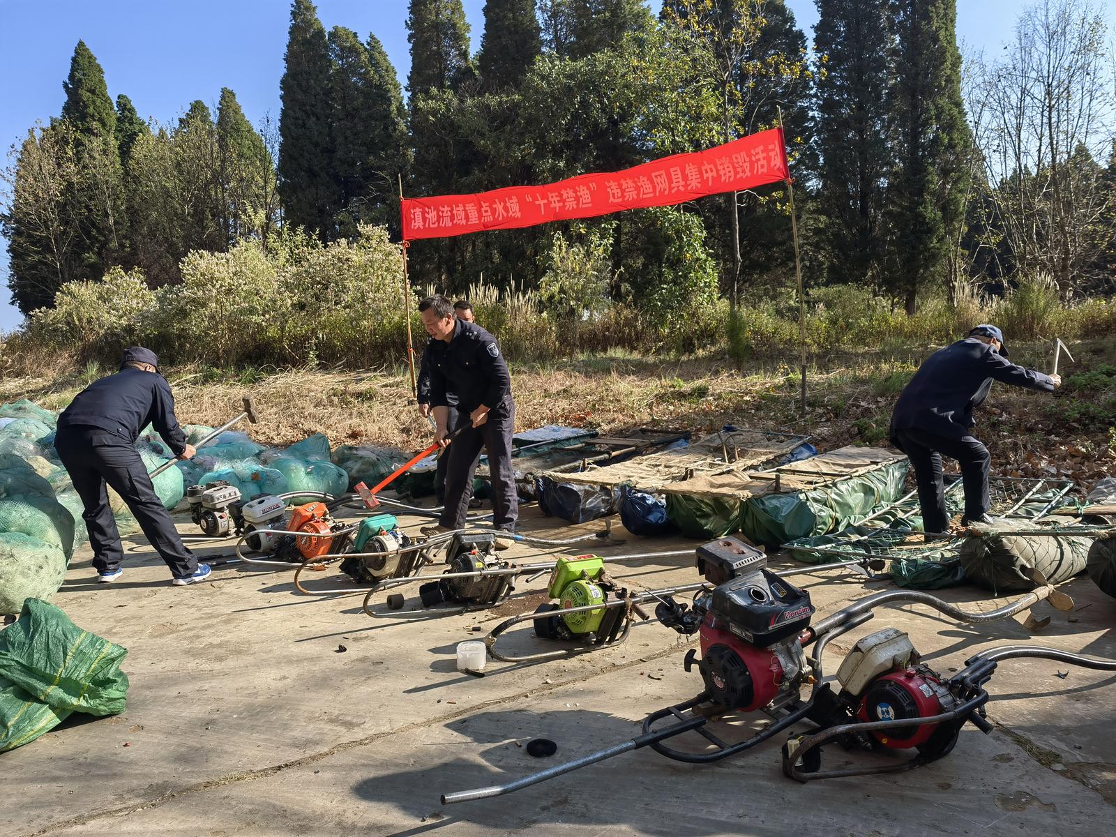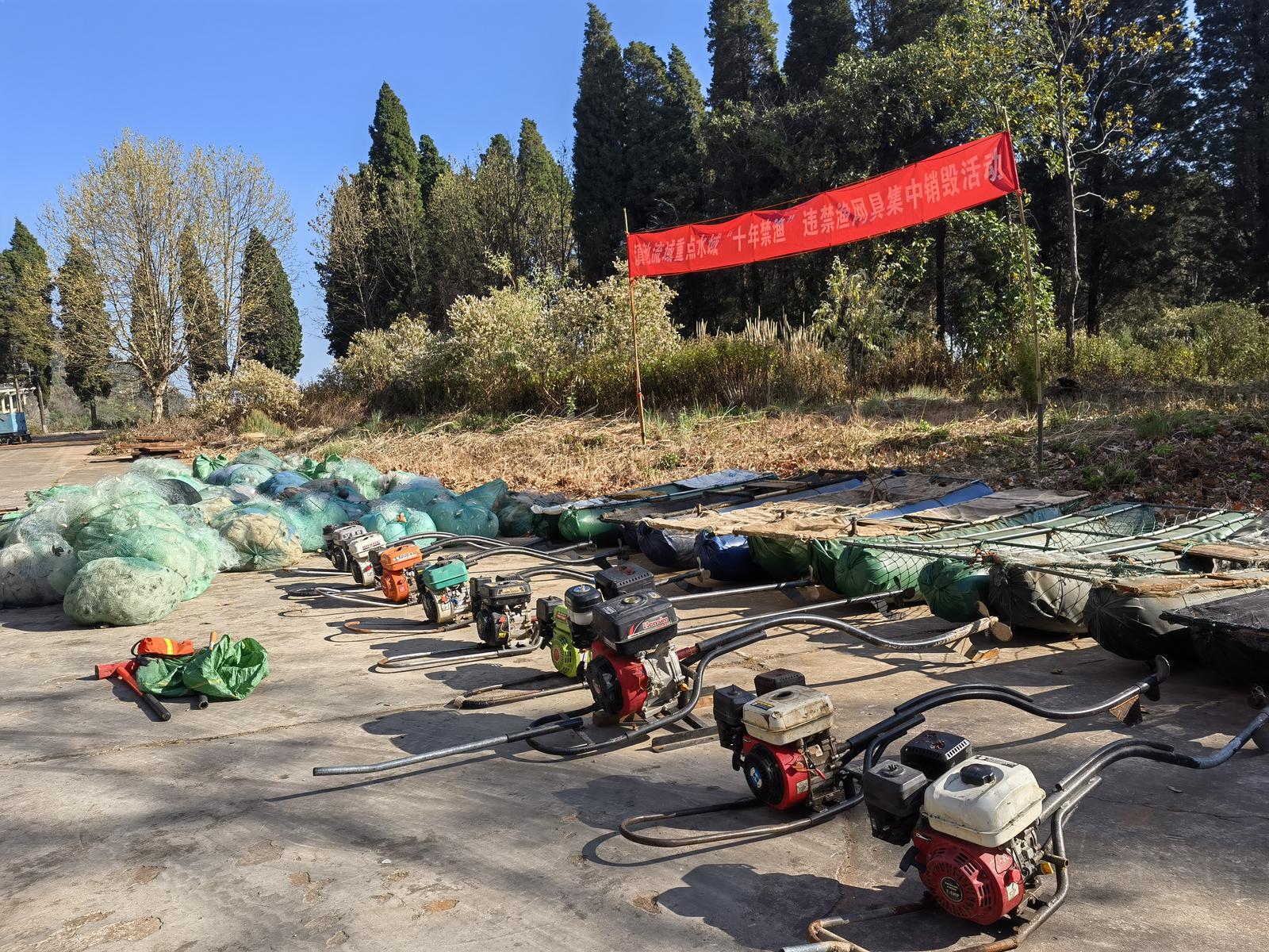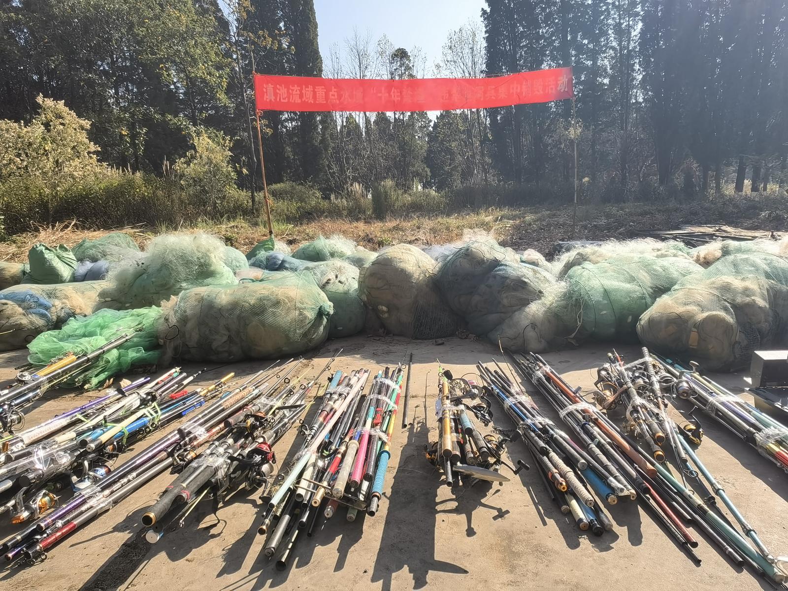 2月27日,昆明市滇池管理局组织开展滇池流域重点水域“十年禁渔”违禁渔网具集中销毁活动,集中处置近期依法收缴的各类违禁渔具。