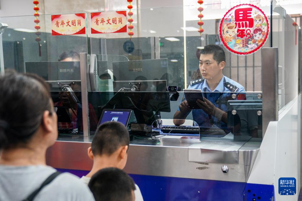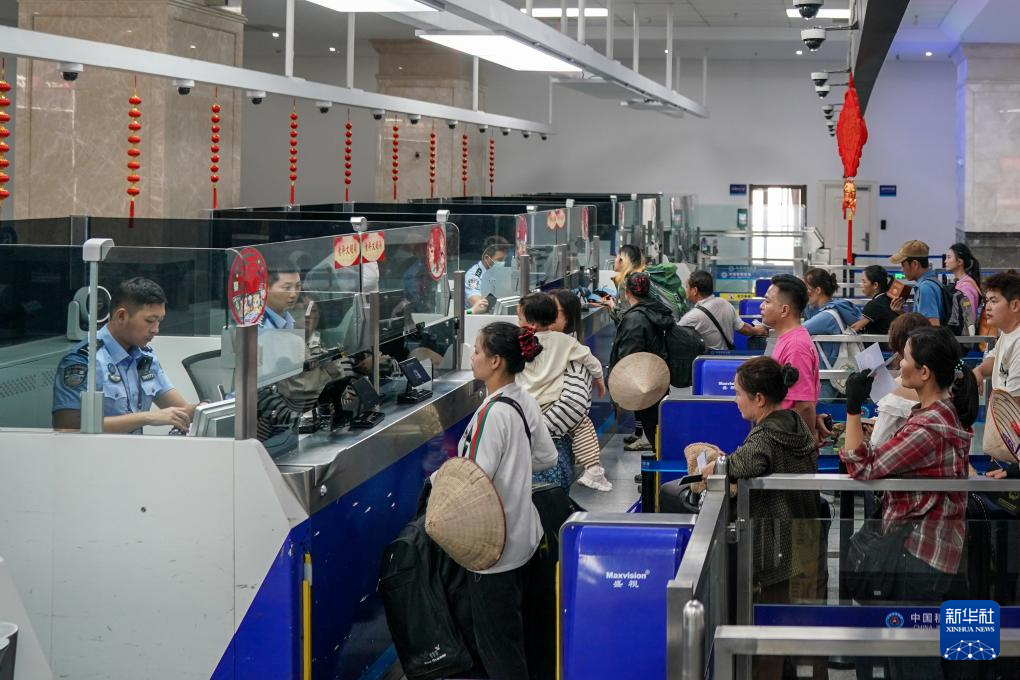 2月26日,河口边检站执勤民警为旅客办理边检手续。新华社记者 彭奕凯 摄