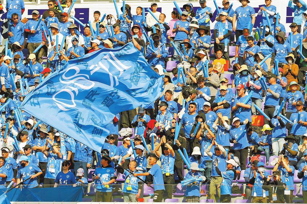 昆明球迷激情四射,为球员欢呼呐喊。云南日报 记者周灿 摄