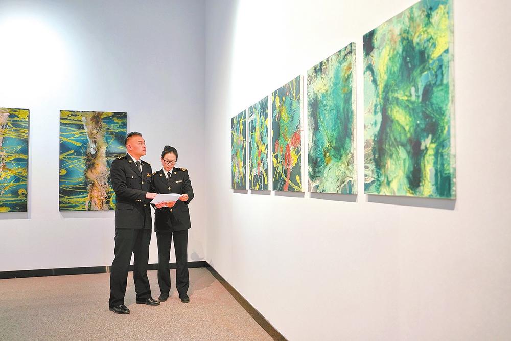 海关关员在云南省博物馆对展出画作进行现场监管。云南日报 通讯员邱渝璠 摄