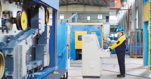 云南多宝电缆集团股份有限公司生产车间内一派热火朝天的生产景象。