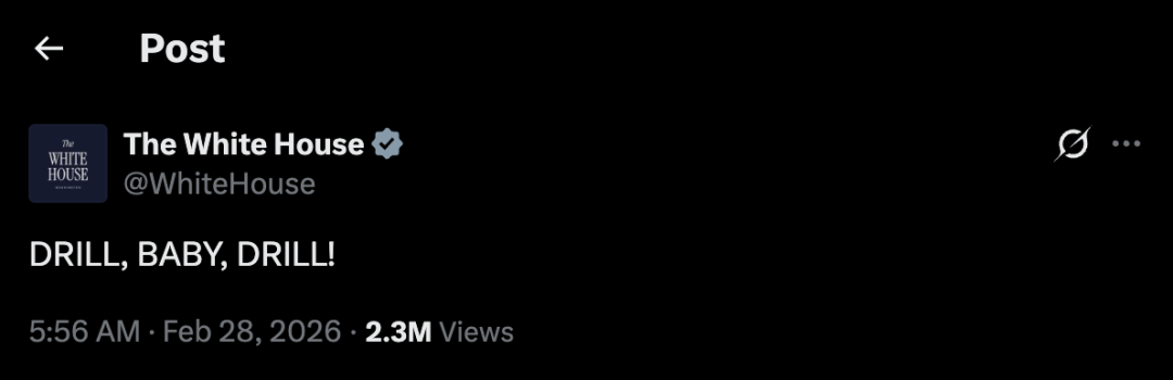 2月28日,美国和以色列宣布,对伊朗发动联合军事行动。同时,白宫的社交媒体账号更新了一条动态,只有简短的一句话: