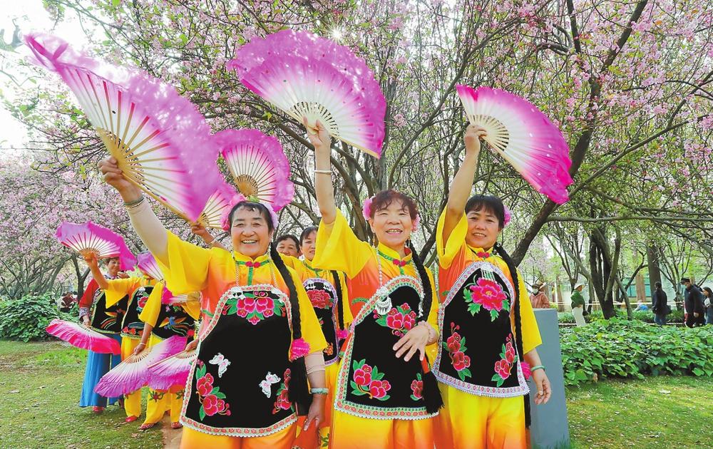 妇女同胞在昆明西华公园欢度节日。本报记者 杨峥 摄
