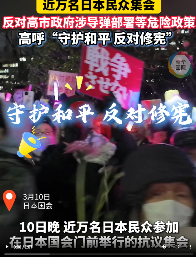近期,高市政府除着手修改“防卫装备转移三原则”运用指南、为武器出口进一步“松绑”外,还加快推进在日本境内部署远程导弹,并试图推动修宪,在日本社会各界引发广泛担忧与批评。(记者:李子越、李林欣;视频:操兰漪)