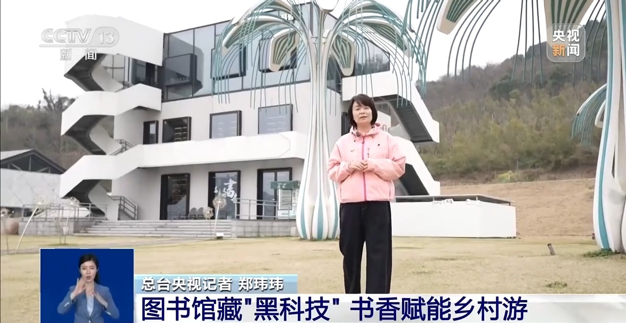 总台央视记者 郑玮玮:这里是安吉余村的未来图书馆,大家可能想不到,这座高颜值的建筑,还是一座能发电、能储能的绿色电站。它的屋顶铺设了光伏板,每年发的电,不仅能满足图书馆全年的用电需求,多余的电量还能并入电网,为村集体带来稳定的收益。