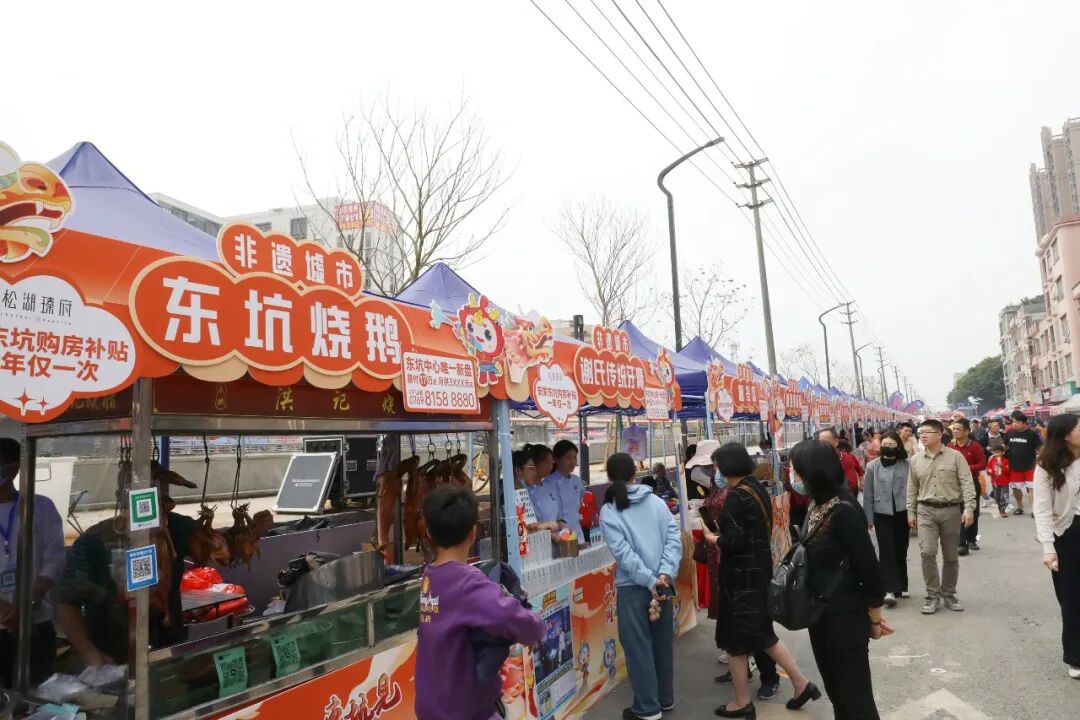 今年的二月初二非遗展示活动,不仅传承了千年文脉,更注入了年轻活力与湾区特色,致力于打造一场集农耕文化、非遗展示、潮流体验、全民狂欢于一体的节庆嘉年华。活动以东坑内河为纽带,扩大核心活动区域,将节庆展销、非遗墟市、Tony一条街、人才招聘、NPC互动、智创优品展等项目布局于内河两岸。内河增设龙舟表演,让移动的艺术画廊与节庆展销相映成趣,犹如一幅现实版的“清明上河图”。