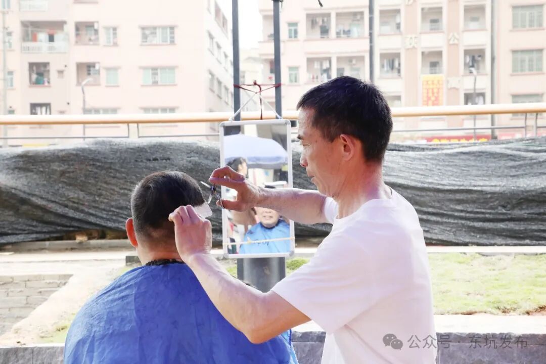 设置多个理发摊位,网上招募经验丰富的理发师为市民群众提供优惠的理发服务。