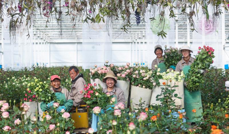 云南积极探索“政科企613”联农带农机制,推行“金融+保险”模式,让花农敢种、花企敢闯。在丽江现代花卉产业园,28岁的和绍蕊结束在外漂泊的日子,和父母在园区务工,不仅有了稳定的工资,还有土地流转分红,一家人生活彻底变了样。