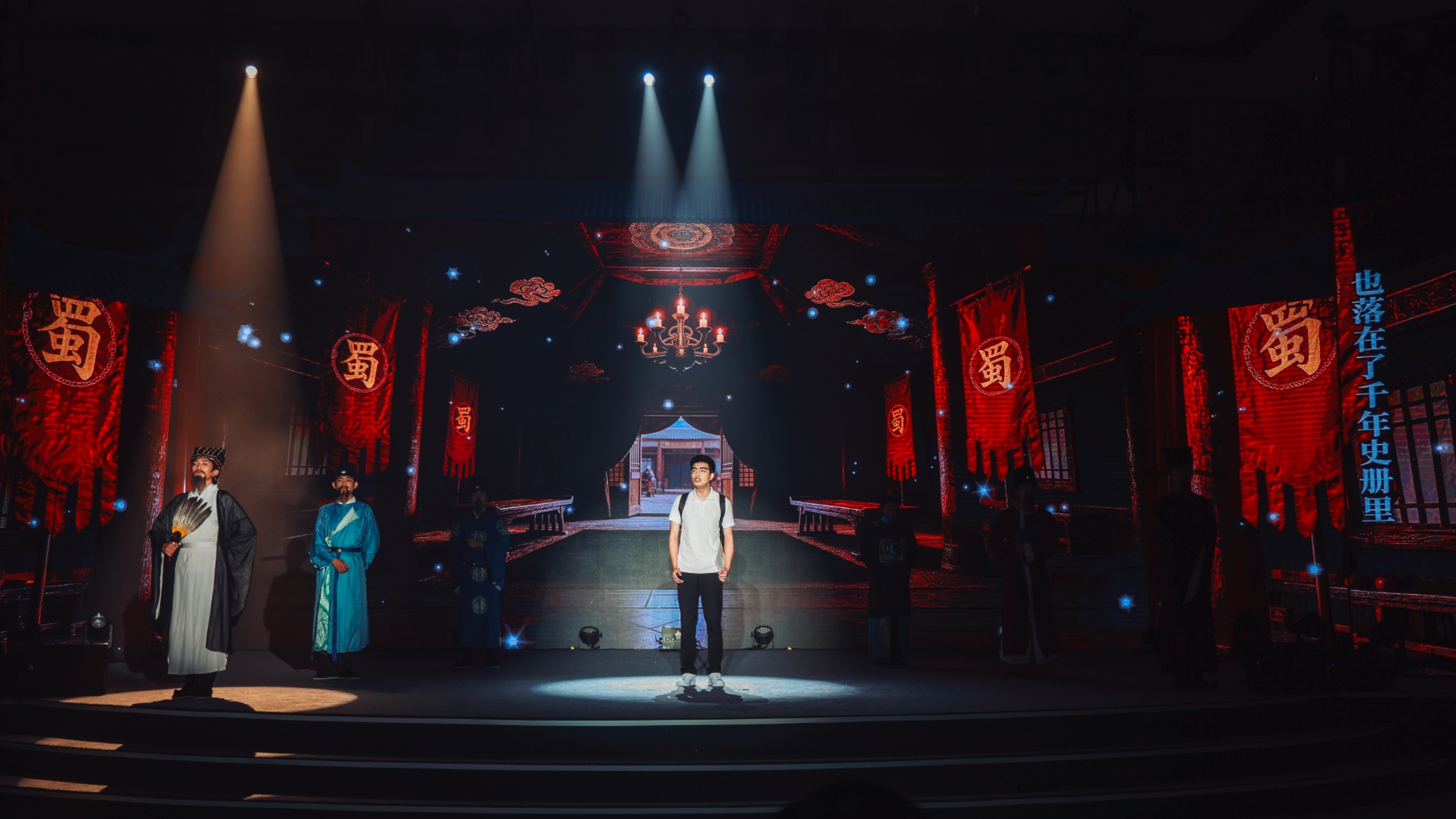 “幼常之死,痛在我心。然,军法如山,岂可因人而废?”舞台上的诸葛亮声音低沉,却字字千钧。对面,当代大学生汪国伟目光灼灼,躬身行礼:“丞相,您挥泪斩马谡,守的是法,护的是国。”