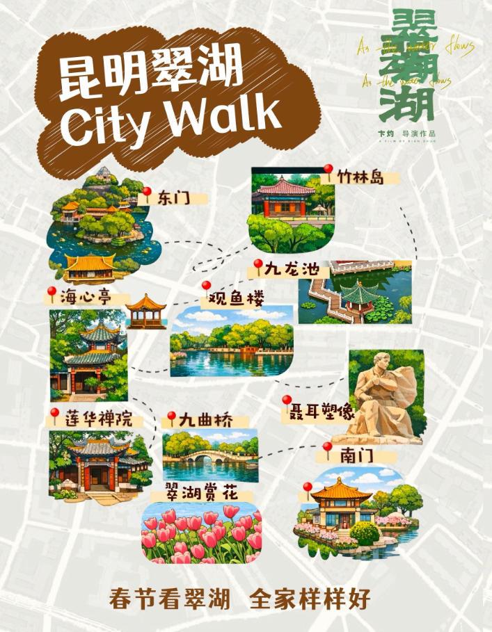 昆明翠湖City Walk路线图。五华区新闻出版(版权)局供图