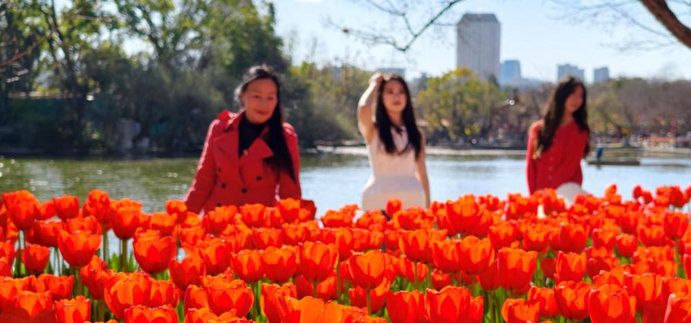 游客在翠湖公园观赏郁金香。 记者刘薇薇/摄