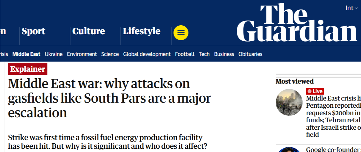 在以色列空军当地时间3月18日袭击了位于伊朗南部布什尔市的伊朗“主要天然气设施”后,19日,伊朗方面表示已发动“真实承诺-4”行动第63波攻势,“焚毁”与美国相关的石油设施作为报复。相关声明称,伊朗同美国和以色列的战争已进入“新阶段”。多家外媒指出,这是美以发动对伊军事打击以来,首次袭击伊朗在海湾的能源生产设施,标志着战争的“重大升级”。