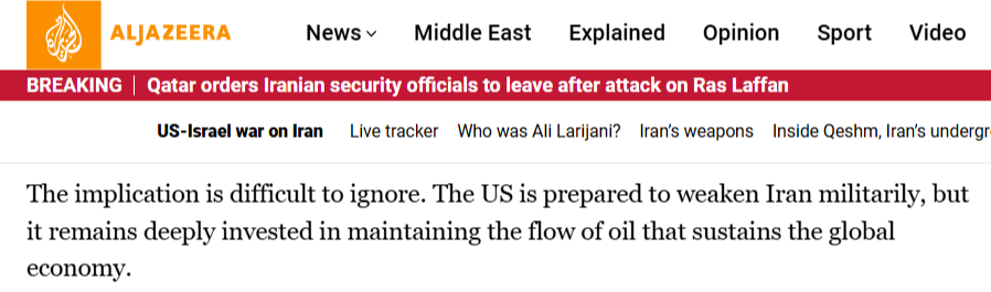 半岛电视台的报道称,最近的事态发展表明,另一种更深层次、美国政府由来已久的“石油逻辑”正在发挥作用。美国的根本目的是控制资源,保障石油的流动性,这是全球资本主义经济的命脉。