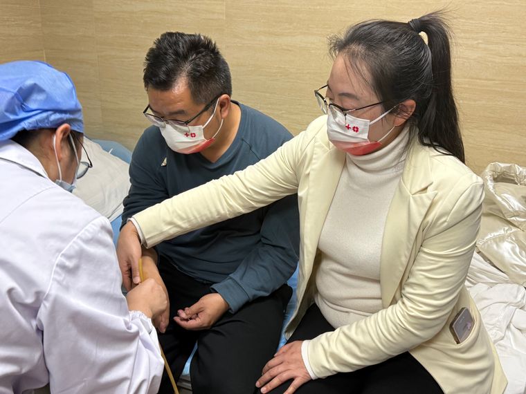 3月15日,他在中华骨髓库云南分库的工作人员和妻子的陪伴下入院,开始注射动员剂。他的爱人也是一名医务工作者,此次一直陪伴在他身边。看着丈夫因动员剂反应而身体不适,她心里满是心疼。但作为一名医者,她更懂得这次捐献的重量。