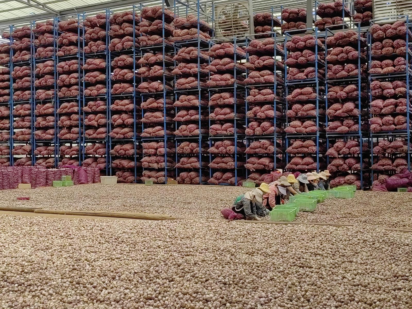 时下,云南大理宾川大蒜迎来销售高峰,走进大理热宝农业科技有限公司生产车间,四五米高的钢架上摆满了一袋袋大蒜,工人们手脚麻利地对大蒜进行分拣、称重、打包、封箱。一箱箱带着泥土芬芳的优质大蒜,正通过电商渠道奔赴全国各地。