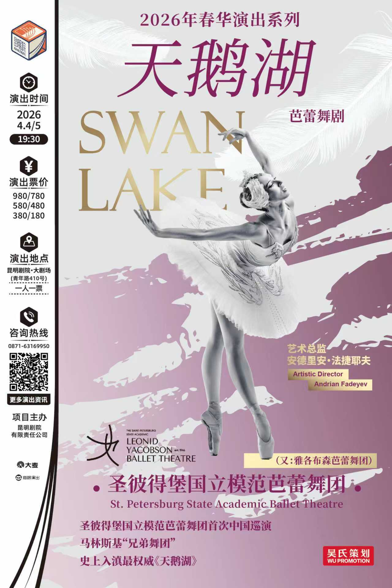 4月4日至5日在昆明剧院·大剧场上演的圣彼得堡国立模范芭蕾舞团《天鹅湖》,作为【2026年春华演出系列】重磅项目,这不仅是一场芭蕾艺术的盛宴,更是一次文化与文化的碰撞,是与俄罗斯古典芭蕾血脉的深度对话。观众可通过微信搜索“昆明剧院官方商城”小程序在线购票。