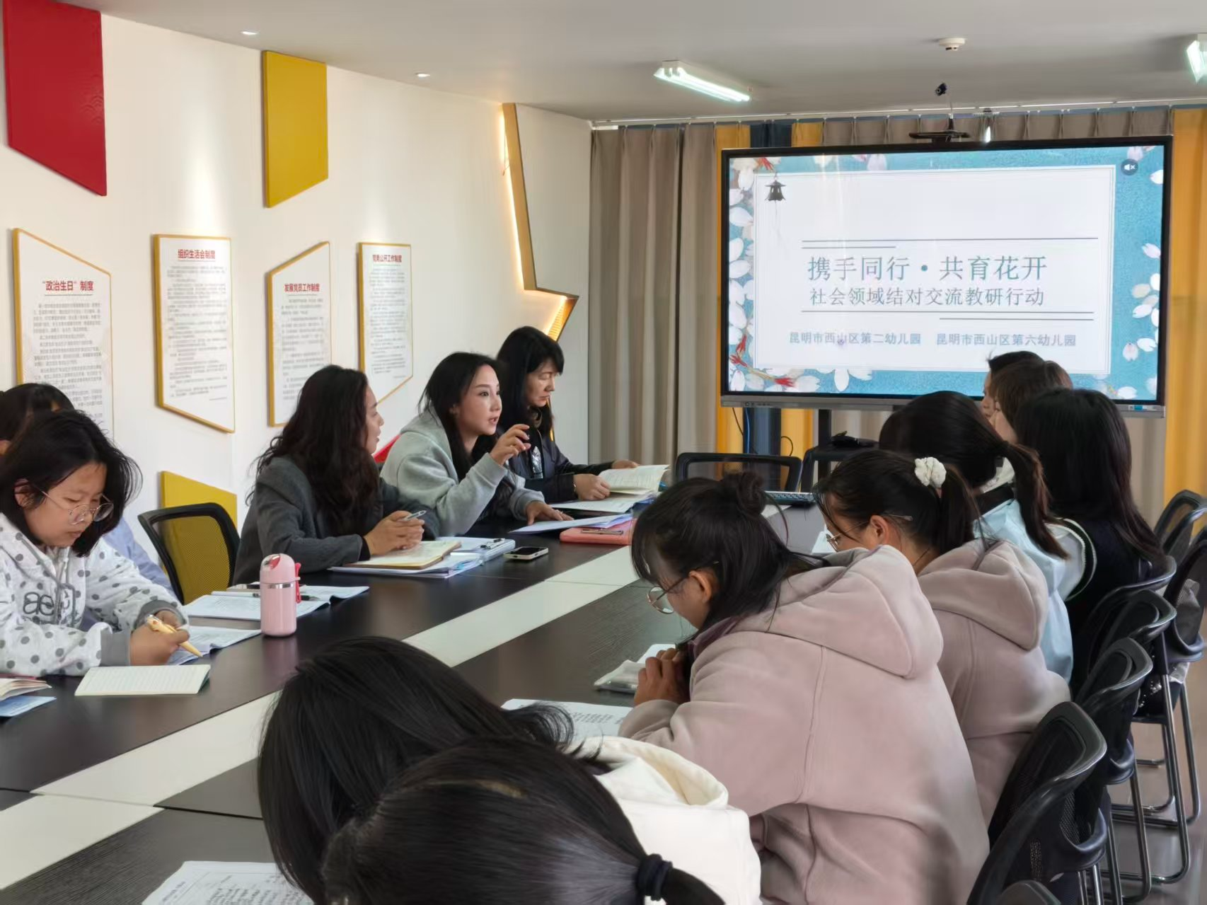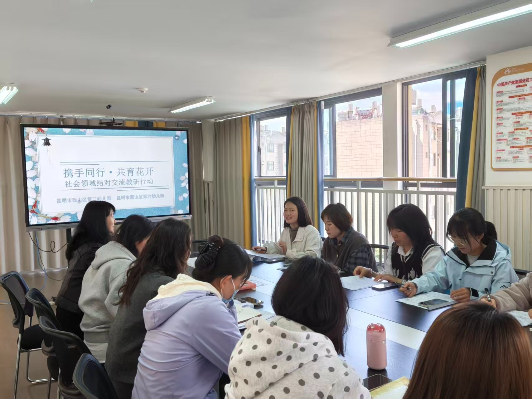 昆明信息港讯 通讯员盛月姬 杨艳萍 为深化幼儿园社会领域教学研究,促进园所间资源共享、优势互补,推动学前教育教学质量稳步提升,2026年3月31日,昆明市西山区第二幼儿园与西山区第六幼儿园联合开展“携手同行·共育花开”社会领域结对交流教研行动。