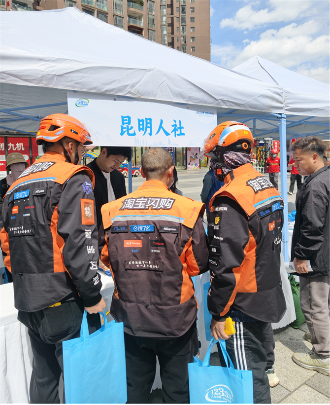 人社部门在昆明市五华区和谐广场为新就业形态劳动者提供政策咨询。供图