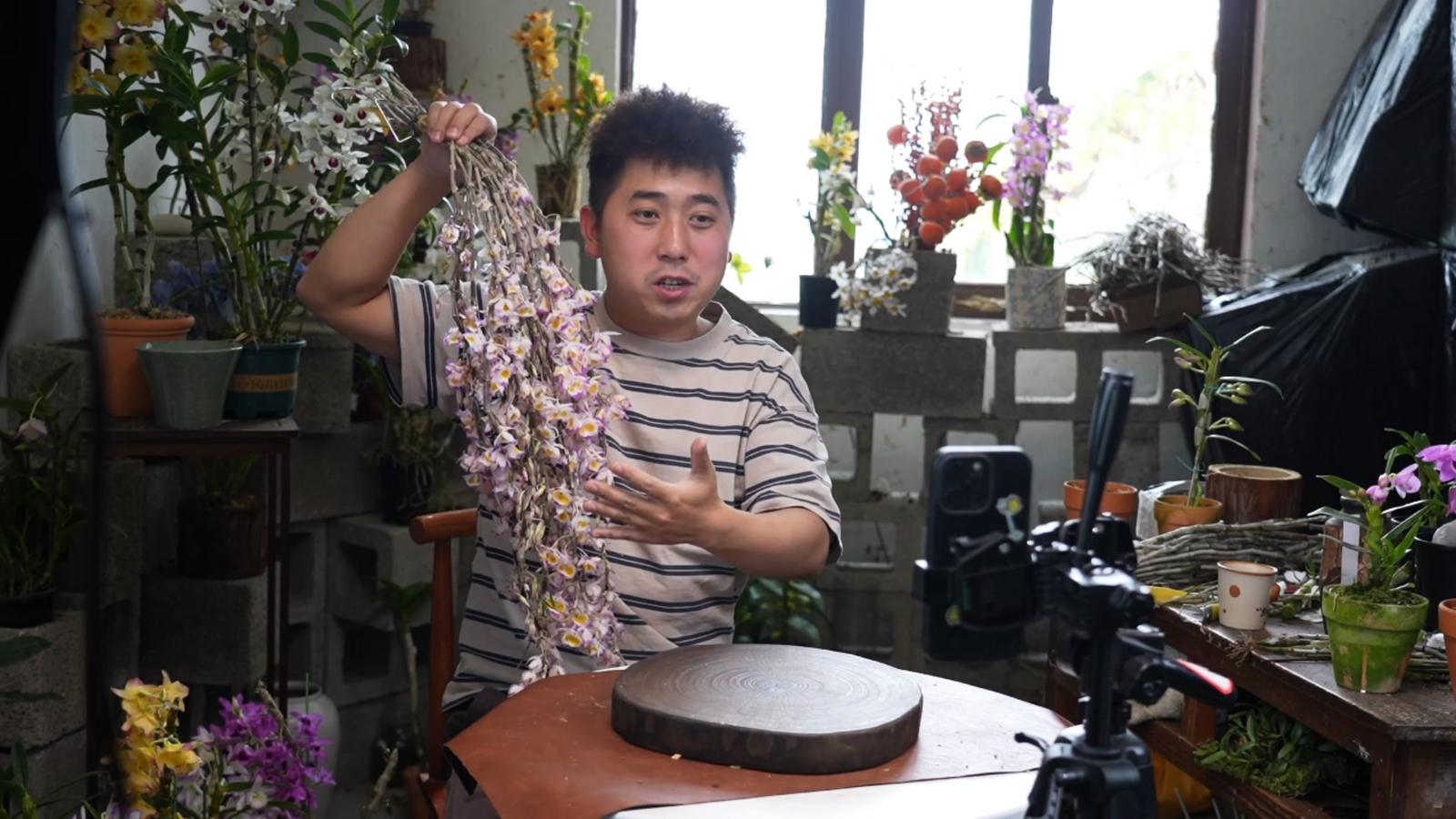 “收到后不用施肥不用晒太阳,插在花瓶里就能开花,花期能保持20到30天,开花后还能泡茶煲汤。”直播间里,李年兴一边转动花枝展示品相,一边耐心讲解:“收到后不用施肥不用晒太阳,插在花瓶里就能开花,花期能保持20到30天,开花后还能用来泡茶煲汤。”