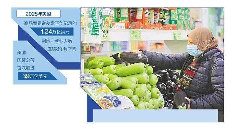 现实情况也是,美关税大棒未能真正奏效。一方面,关税并没有显著削减美对外贸易逆差,美国2025年商品贸易逆差继续扩大,增至创纪录的1.24万亿美元;另一方面,企图以关税重振美国制造业的“如意算盘”也落了空,美国制造业就业人数2025年连续8个月下降,关税措施带来的不确定性还抬高了生产成本,反而损害美国制造业竞争力。这也表明,提高关税解决不了美国自身问题,不仅损害美国自身利益,严重透支国家信誉,也危及全球经济发展和产供链稳定。