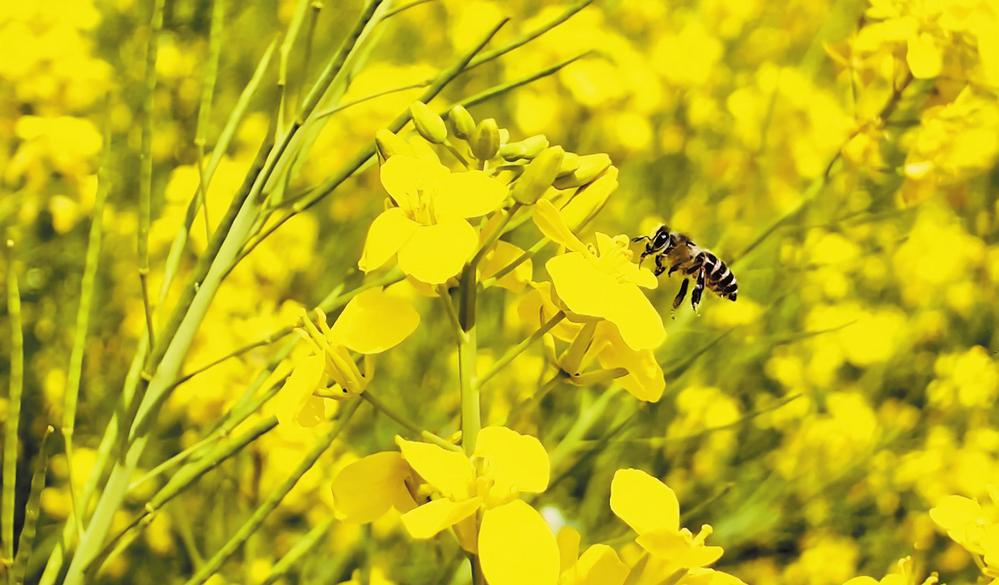 罗平蜂舞油菜花间。 本报记者 隋鑫 摄