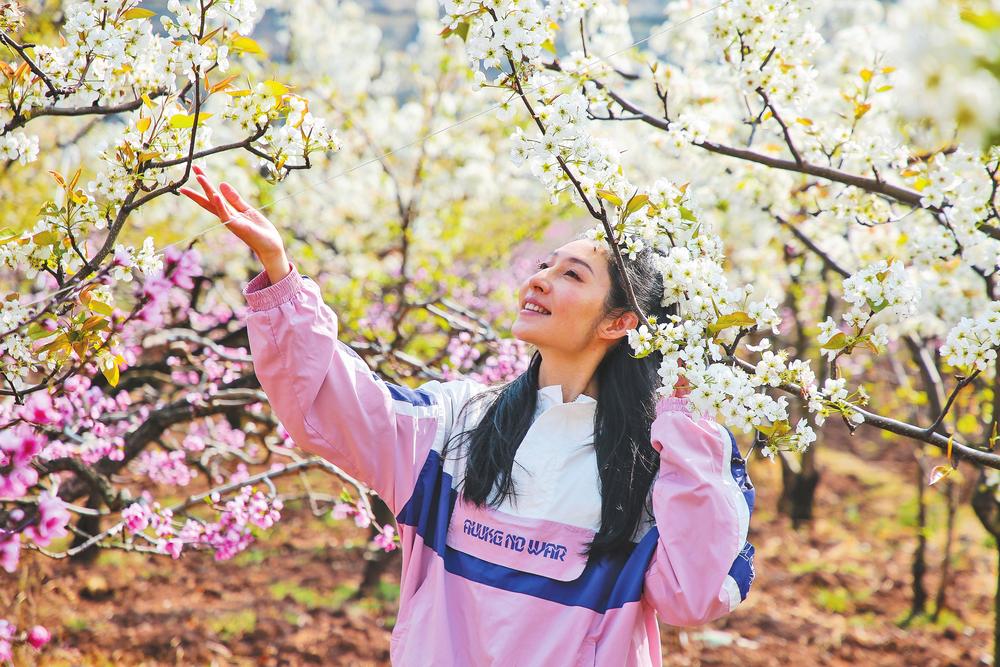 游客在会泽水城梨园拍照打卡。 本报通讯员 尹永权 摄