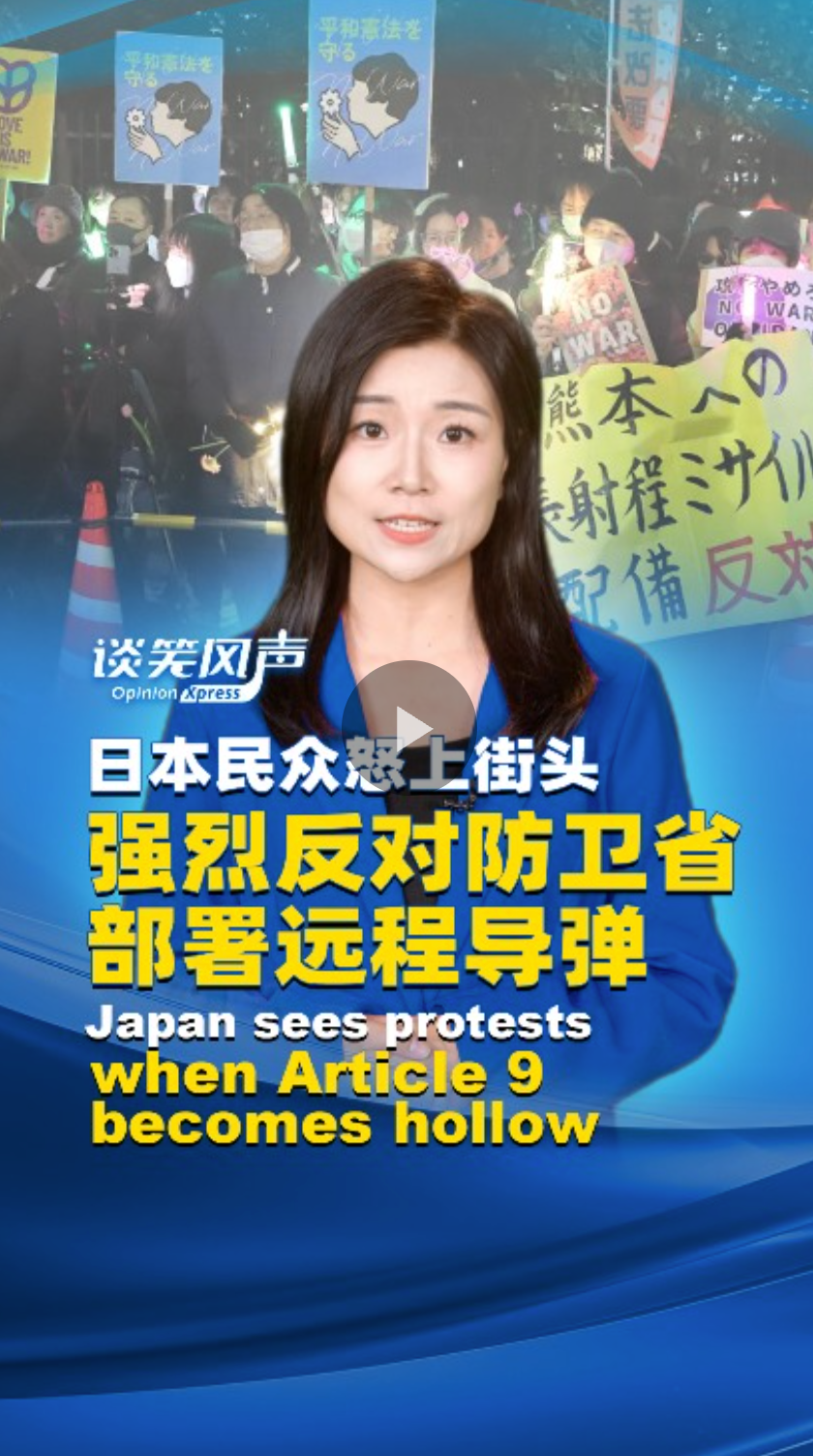近日,日本民众走上街头,强烈反对防卫省部署远程导弹。据报道,防卫省在熊本县部署改进型12式岸舰导弹,在静冈县的富士驻屯地部署用于岛屿防御的高速滑翔弹。远程导弹让日本具备打击海外目标的能力,这意味着和平宪法第九条已形同虚设。“谈笑风声”工作室评论指出,日本真正的安全不需要攻击性导弹,而是需要坦诚对话以及反思历史、恪守和平宪法。