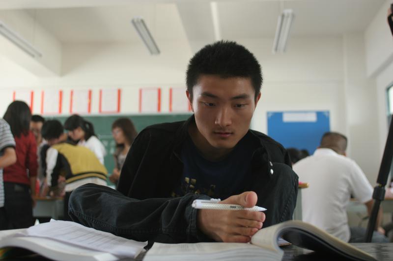 2012年,在大学课堂用脚翻阅课本的杨孟衡。