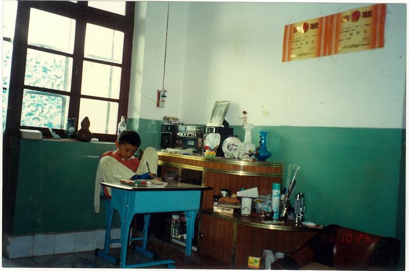 1997年,失去双臂不久的小孟衡正在练习用脚写字。