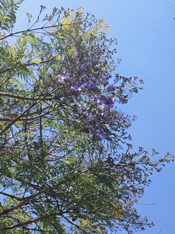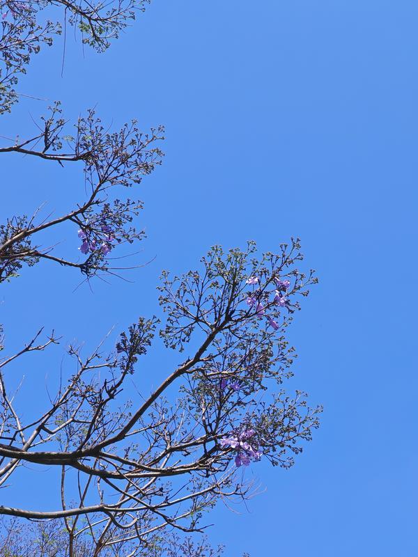 春城4月,蓝花楹悄然上线。开屏新闻记者6日在盘江西路(悦海路至星海路段、金佳路段)看到,道路两侧的蓝花楹树枝头已有淡紫色花簇,部分花枝迎风绽放,为春日的昆明增添了一抹浪漫的梦幻色彩,吸引不少市民、游客驻足打卡,定格这份春日浪漫。
