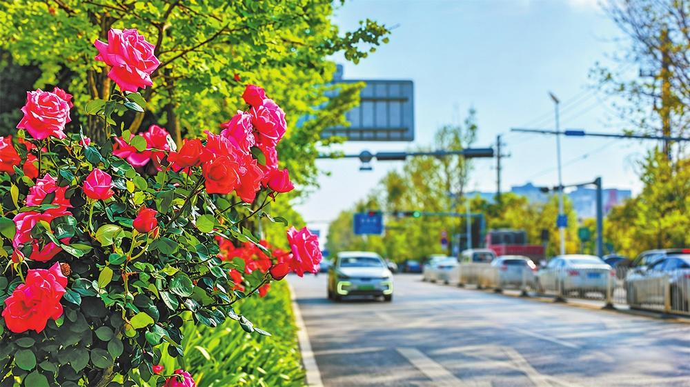 广福路、彩云北路、云秀路、国贸路、会展西路……这些平日里车水马龙的城市动脉,如今被月季装点成了一条条“花廊”。大朵大朵的月季迎风绽放,色彩交织如绚丽的调色盘,尤其是一株多色的品种,更是引得路人频频驻足拍照。