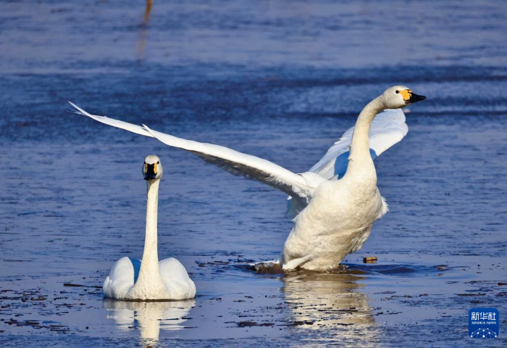 近日,随着气温回升,黑龙江省佳木斯市境内的松花江富锦段冰融水暖,迎来大批北归天鹅。开化的水域成为候鸟的乐园,为春日江畔增添了勃勃生机。
