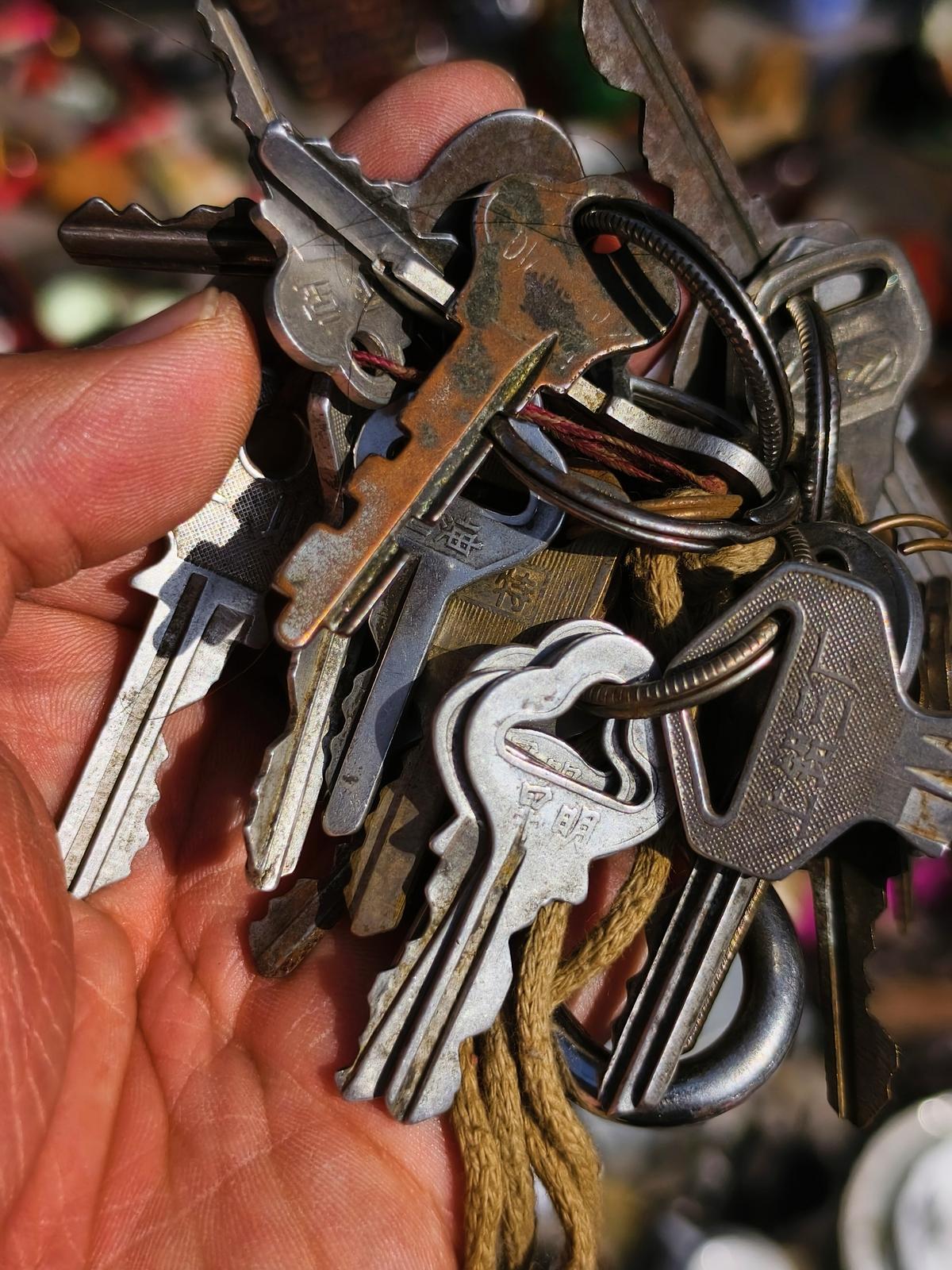 周末的潘家湾文化艺术收藏品市场,百余个固定商铺搭配数十处流动地摊,从场内一直延伸到门外三十余米。这里随处可见带着岁月痕迹的老物件:清末铁矛头、半个世纪前铁匠使用的风箱、各时期古钱币与旧版人民币、上世纪五十年代杂志合订本、手写医书古籍,还有单价仅两元的老式铜钥匙。