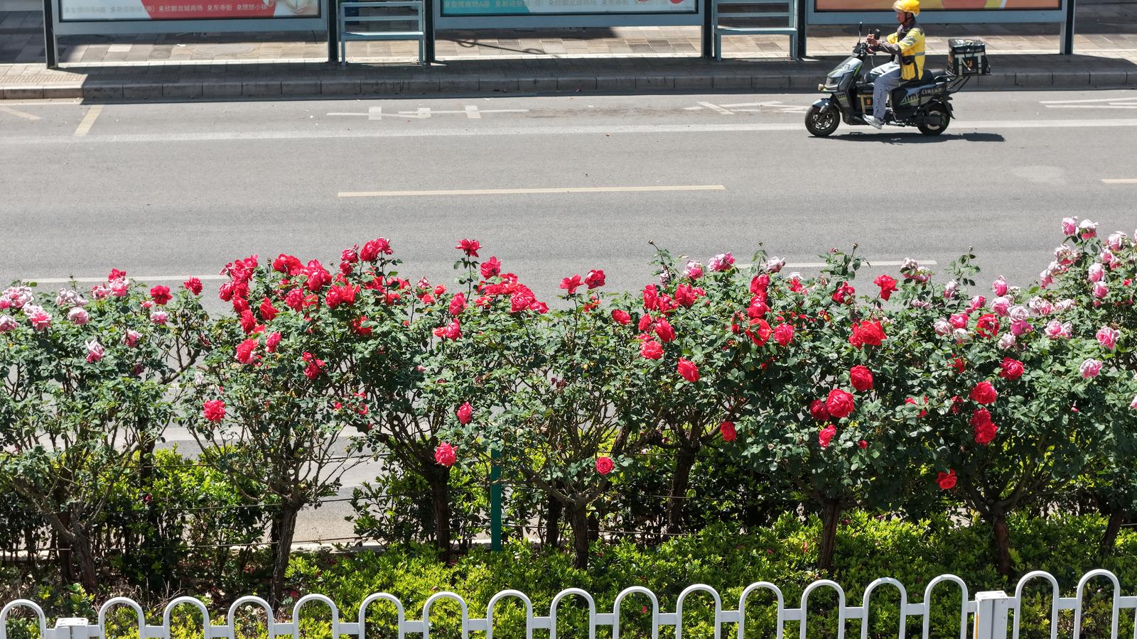 随处可见的花海,让日常出行变成了一场浪漫的赏花之旅,也让市民在繁华都市中,尽享触手可及的自然之美。市民李女士笑着说:“每天上下班走日新中路,看着一路的月季花,心情特别舒畅,仿佛所有烦恼都被这繁花治愈了。”(开屏新闻 记者龙宇丹 邓莎莎 摄影报道)