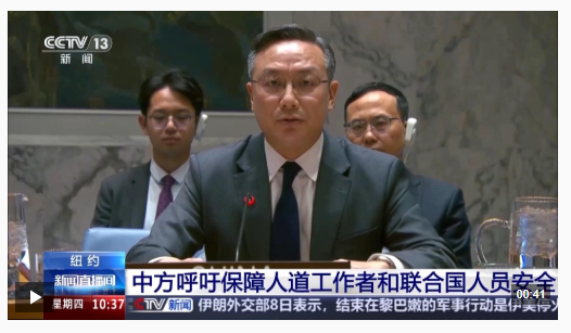 中方强调,面对当前全球范围内冲突不断的严峻形势,国际社会应当团结一致,采取切实行动,为坚守一线的人道主义工作者构筑安全防线。中方提出了四项核心主张:第一,消弭暴力,筑牢安全根基。第二,捍卫国际法治,保障人道行动。第三,停止抹黑打压,尊重联合国履职。第四,加强国际支持,完善保护体系。