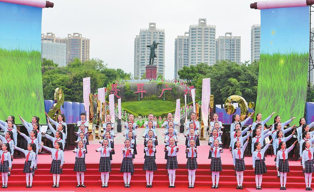 聂耳音乐周里,举办同升国旗同唱国歌活动。 通讯员曾永洪 摄