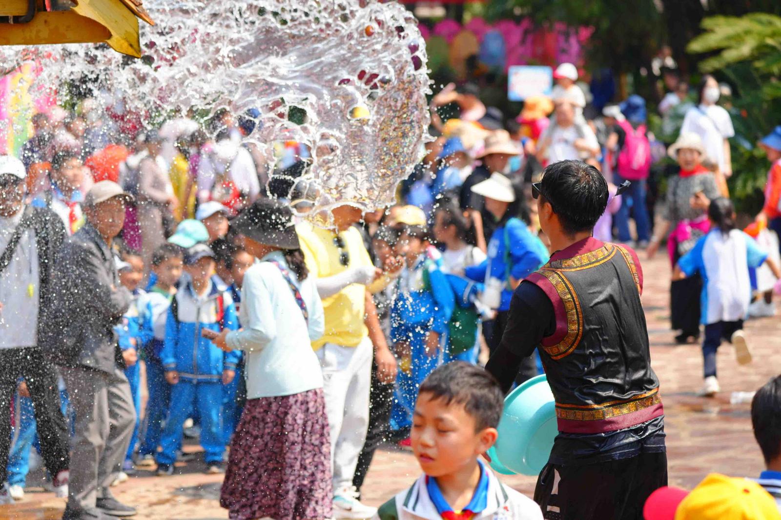 ယူနန်မင်ဇူကျေးရွာ၌ သင်္ကြန်ပွဲတော်ကို ကျင်းပနေ၍ မျိုးစုံသော ရေကစားခြင်း အတွေ့အကြုံများကို ခံစားနိုင်