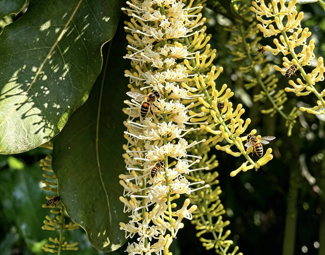 春日的云县,万亩临沧坚果林正值盛花期。米白色的小花缀满枝头,清冽的花香在山间萦绕。花丛间,成群中华蜜蜂忙碌穿梭,为坚果花进行精准授粉。这些小精灵,成了坚果园里的“生态工兵”,也绘出了一幅“林下养蜂、树上结果”的立体农业新画卷。